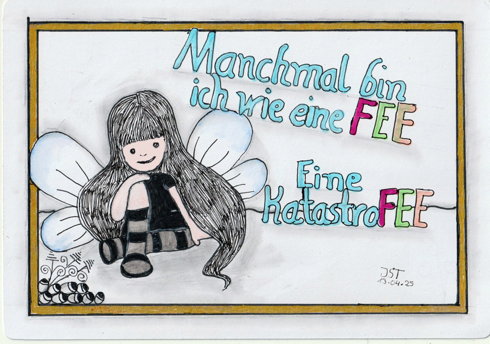 Gezeichnet eine KatastroFEE. Weil sie beides ist. Eine Fee manchmal und das absolute Caos andererseits.