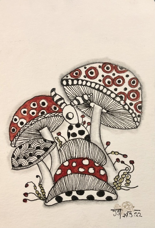 Zentangle Postkarte: Pilze mit Zentangle Muster