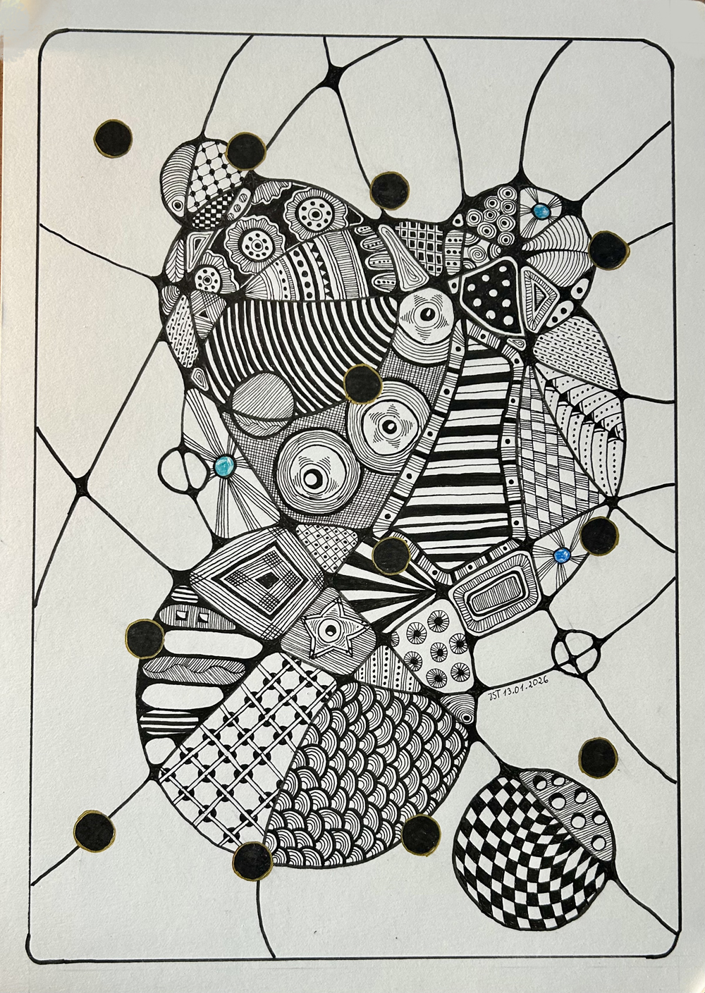 Stifte : Bleistift Faber Castell Fallminenstift 3.15 6B zum vorzeichnen, Sakura Pigment Stifte in Schwarz 0,05 bis 0,10, Zirkel, Fixativ von Gerstaecker, wasservermalbare Aquarellfarben Faber Castell